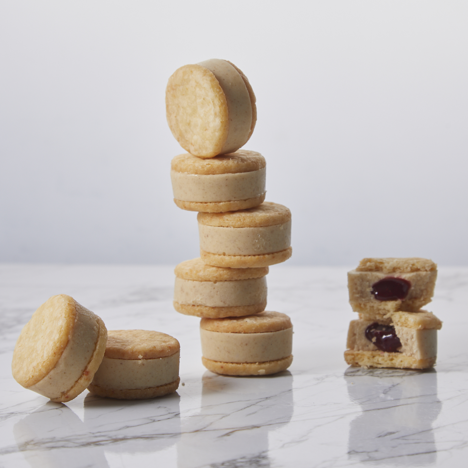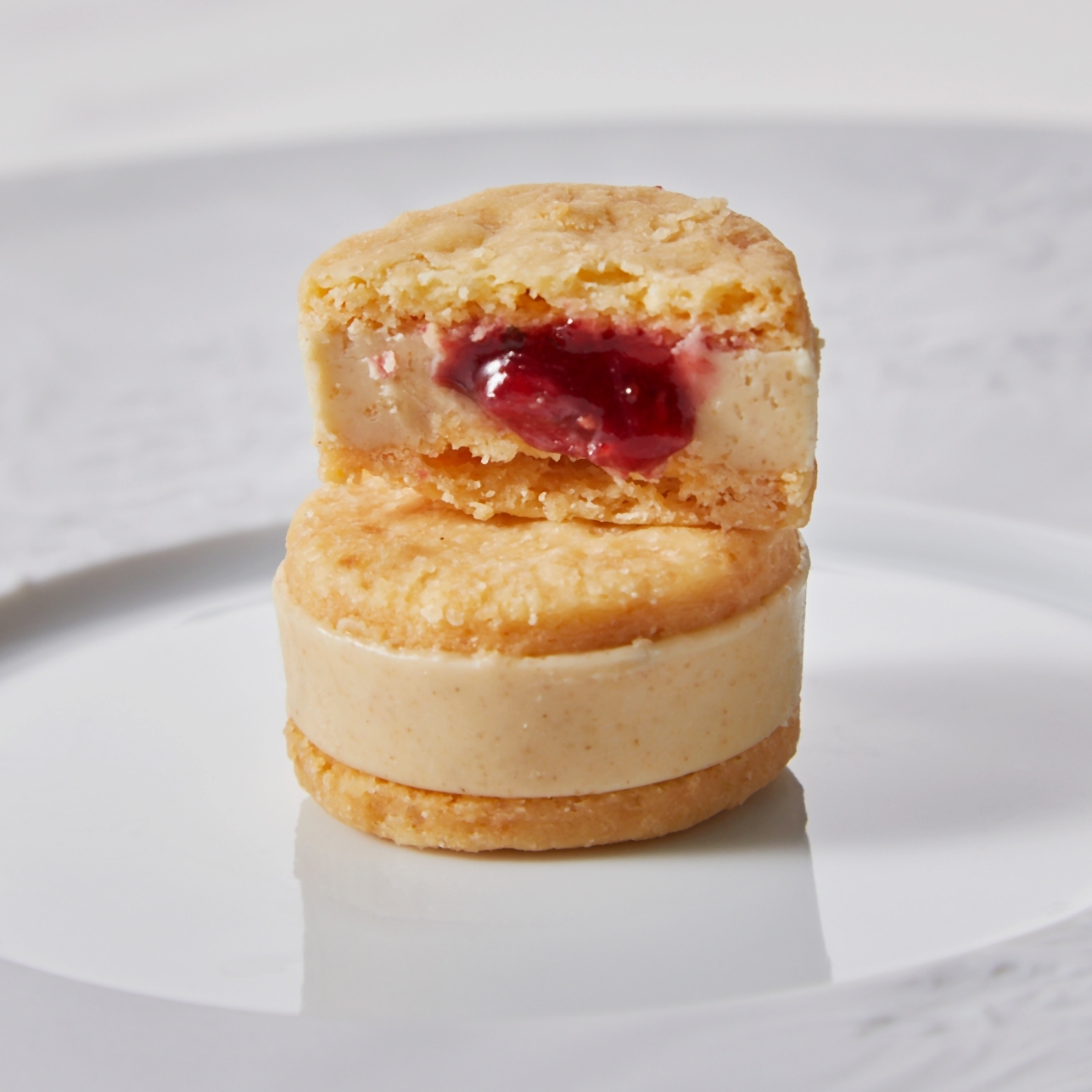 ブランド苺" 四重奏" とラズベリーのジャムを使用した、芳醇なチーズと優しい甘さのチョコーレートのクッキーサンドです