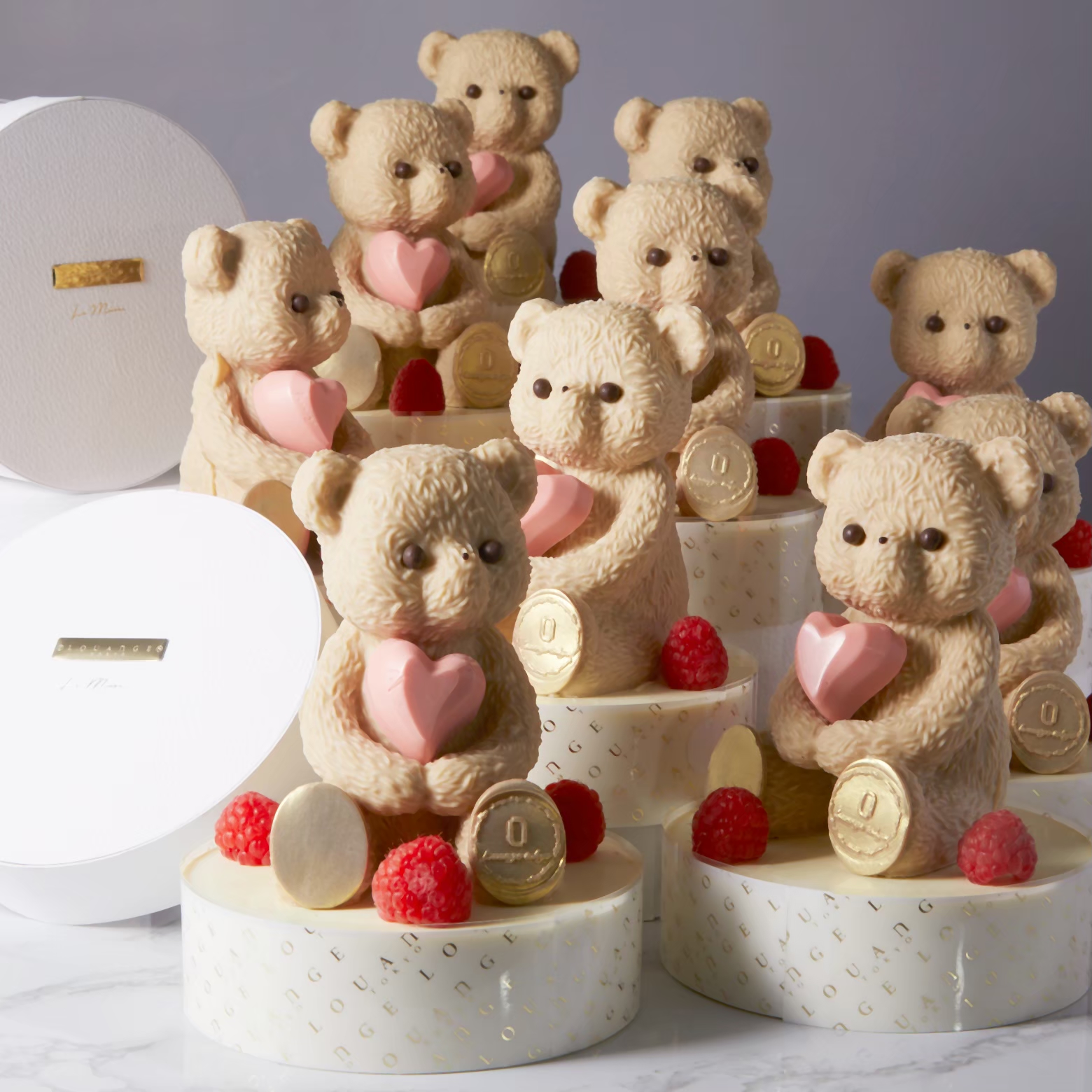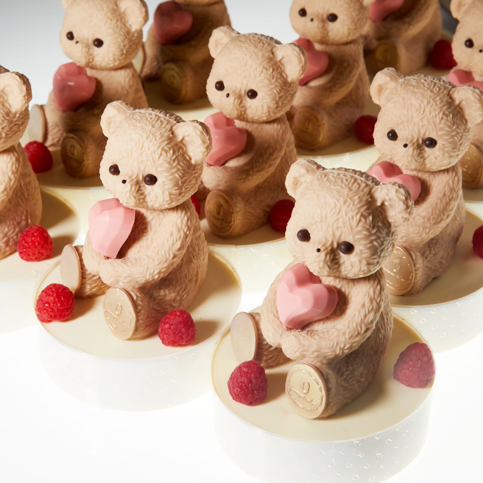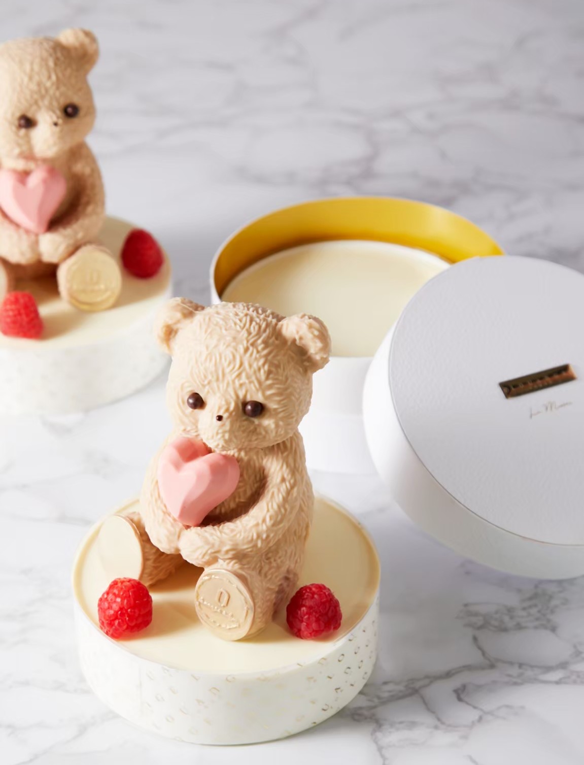 ヌヌース(くまのチョコレート)とハート型チョコレートは別添えです。お客様ご自身でお飾りしていただく仕様となっておりま