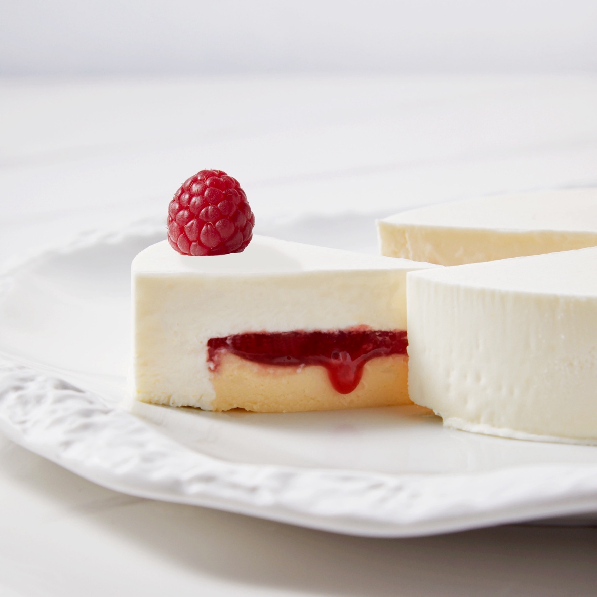 国産クリームチーズをベースにパルメザンチーズのベイクドチーズケーキ、国産ブランドいちごのコンフィチュール、ムースフロマージュの三層仕立てのチーズケーキです。 隠し味のバラの香りとレモンの香りでさっぱりとした味わいに仕上げてます。