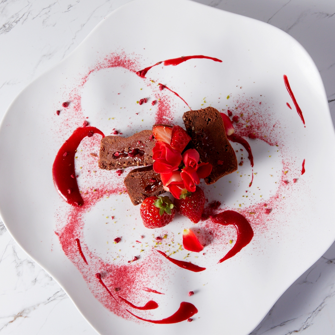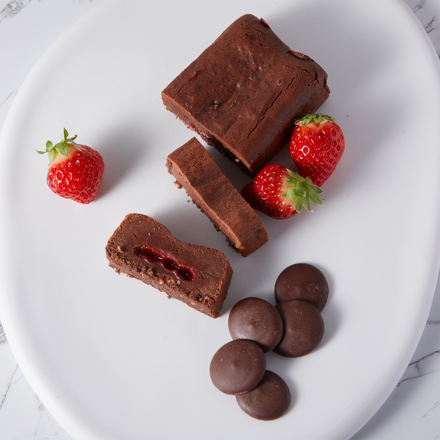 いちご(国産)、チョコレート、卵、砂糖、バター、小麦粉、ホワイトチョコレート、転化糖、アーモンド、ナチュラルチーズ、ココアパウダー、レモンジュース、ストロベリー濃縮果汁(いちご、砂糖)、塩/トレハロース、酸味料(クエン酸、ビタミンC)、着色料(野菜色素、紅花黄)、香料、ゲル化剤(ペクチン)、乳化剤、pH調整剤(一部に乳・卵・小麦・アーモンド・大豆・りんごを含む)