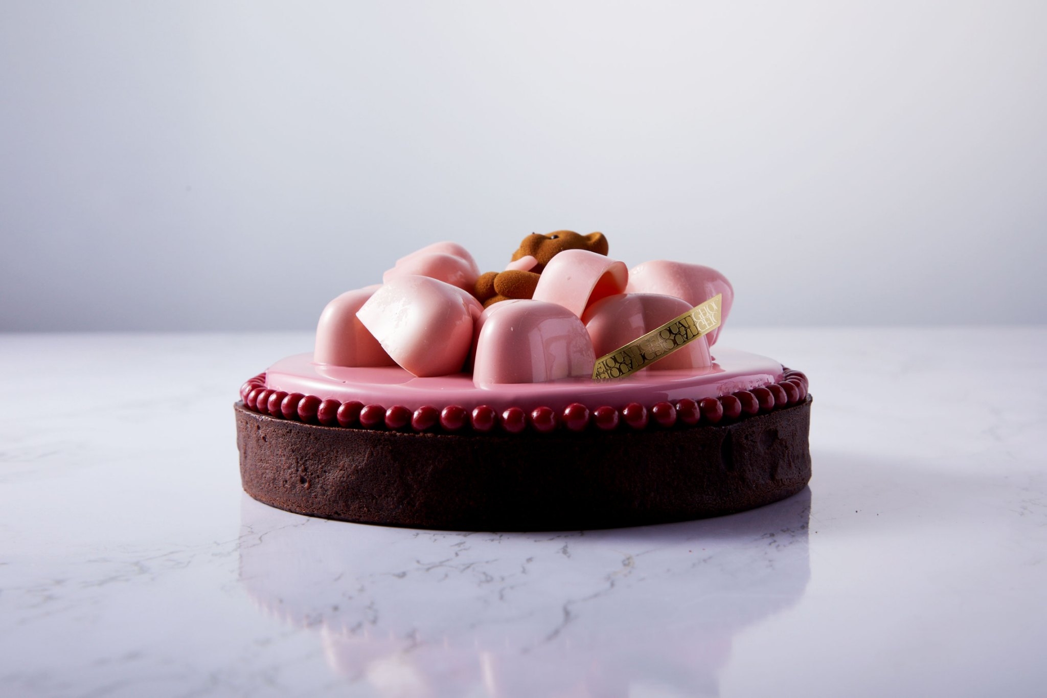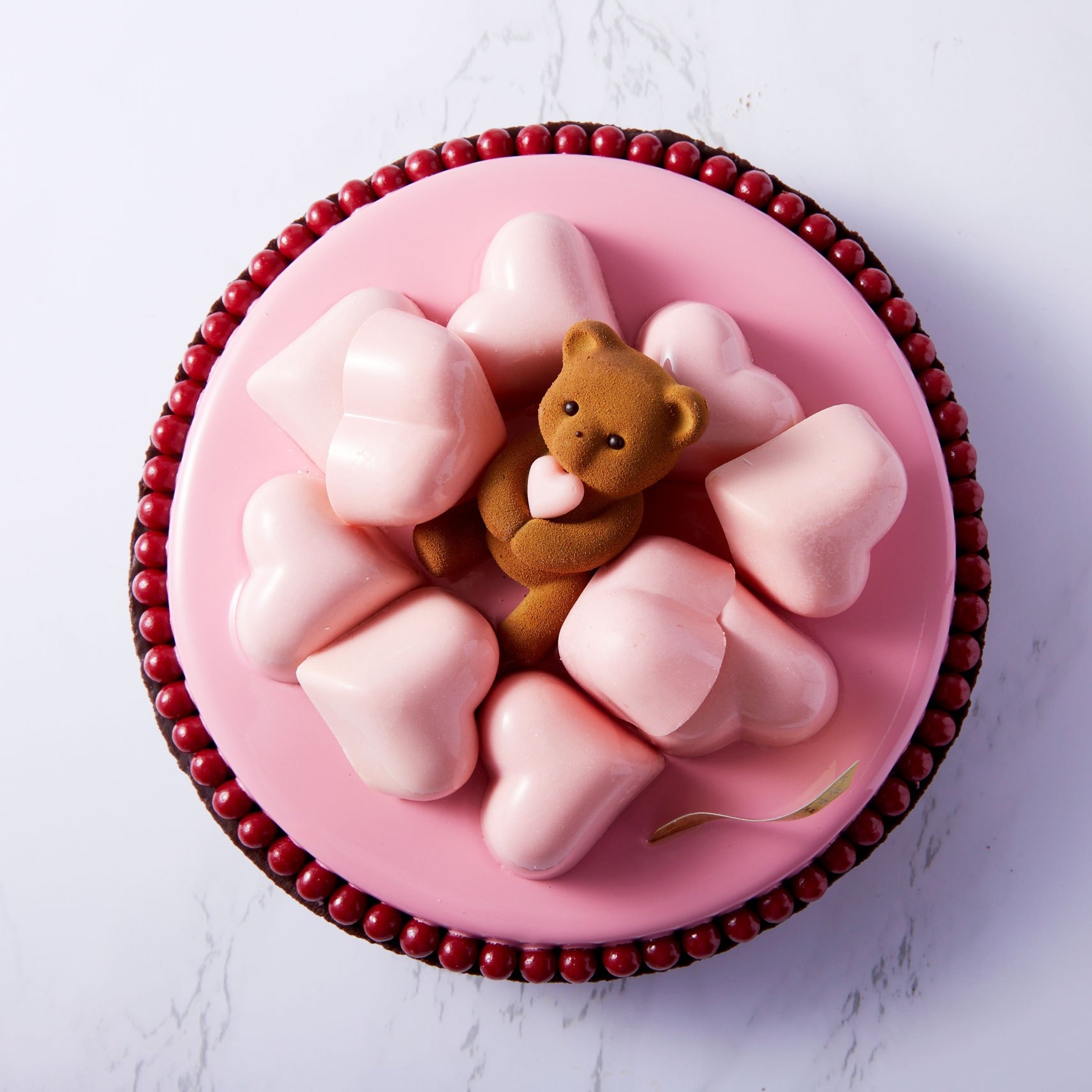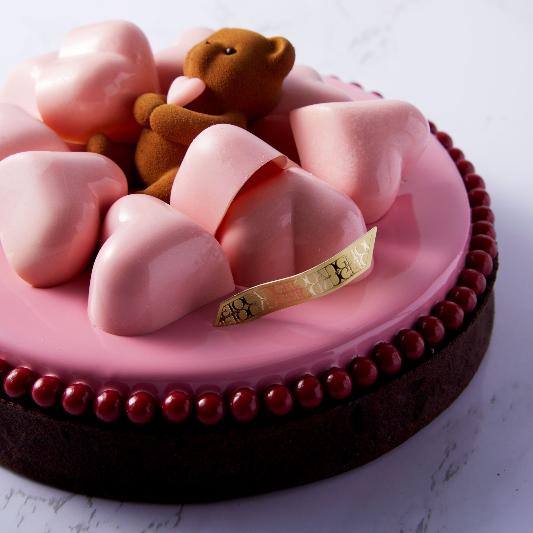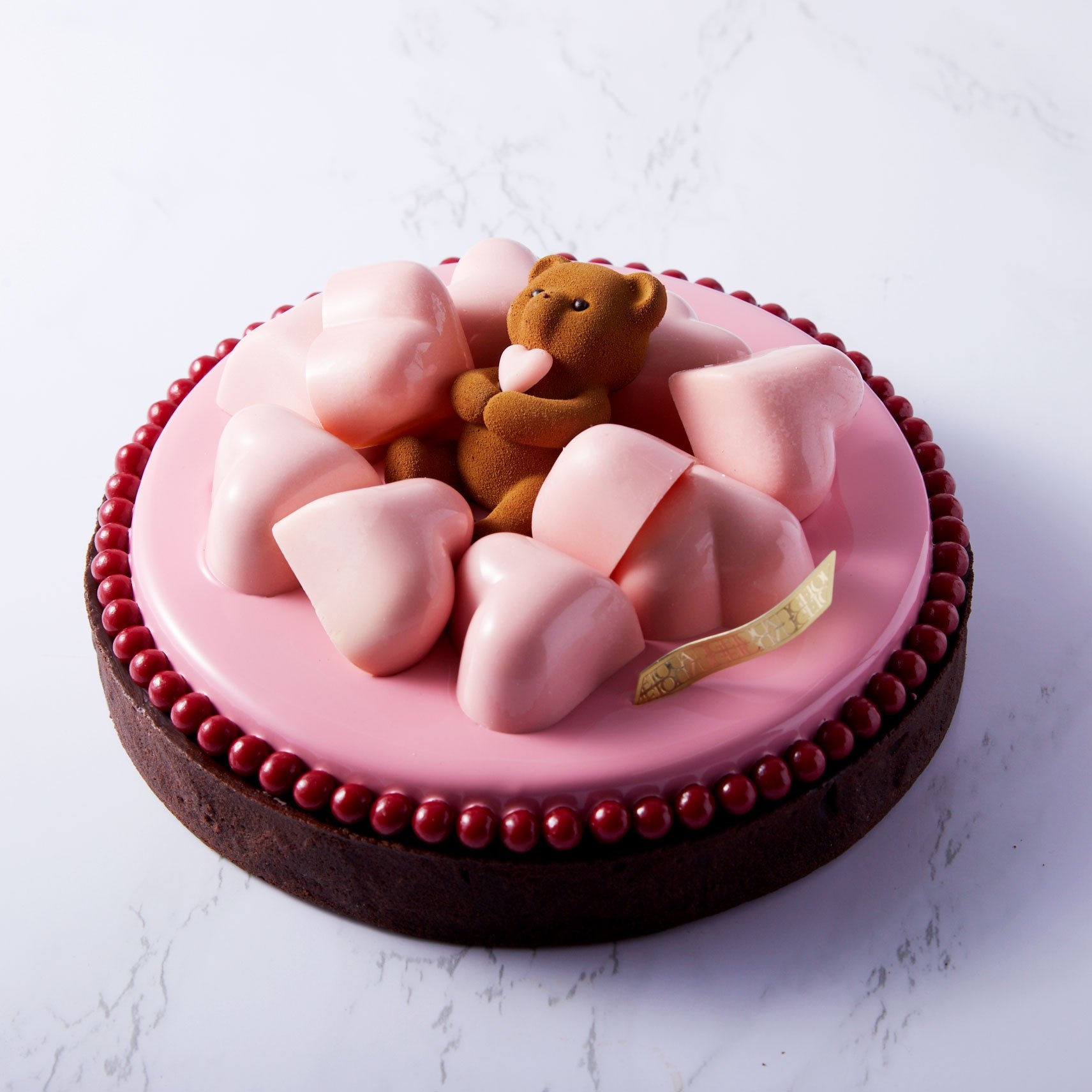 生クリーム(国内製造)、チョコレート、ホワイトチョコレート、バター、カカオバター、小麦粉、砂糖、転化糖、卵、砂糖漬けオレンジ(オレンジピール、砂糖、水飴、洋酒)、水飴、ココアパウダー、オリーブ、グラニュー糖、アーモンド、チョコレートクランチ(砂糖、カカオバター、シリアル、フランボワーズパウダー)、オレンジジュース、生乳、シャンパン、レモンジュース、洋酒、フリュイルージュピューレ、塩/乳化剤(レシチン)、香料、着色料(赤40、黄4、青2、二酸化チタン)酒精、光沢剤、膨張剤(一部に乳成分・卵・小麦・オレンジ・大豆・アーモンド・ゼラチンを含む) |
