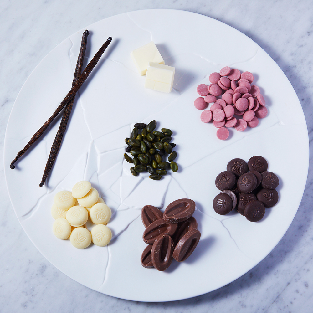 2004年イタリアンアカデミーオブチョコーレートクーベルチュール部門で世界第一位を獲得した「マラカイボ65%」をはじめ、バリーカレボー社が10年以上開発に費やした奇跡のチョコレート「ルビーチョコレート」やヴァローナ社のキャラメリアなど最高級のクーベルチュールを使用しています。
