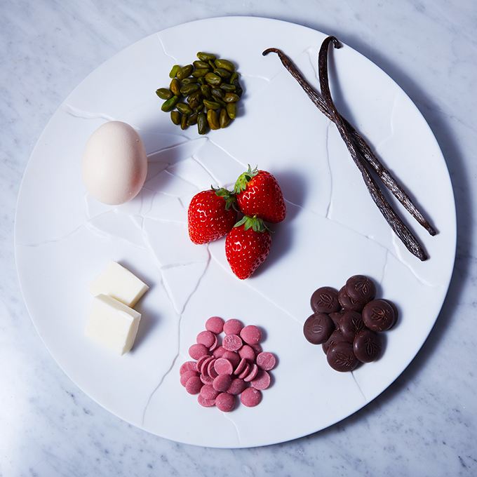・Maracaibo65 ・ルビーチョコレート47% ・あまおう ・タヒチ産バニラ ・イタリア産ピスタチオ ・太陽卵 ・カルピスバター