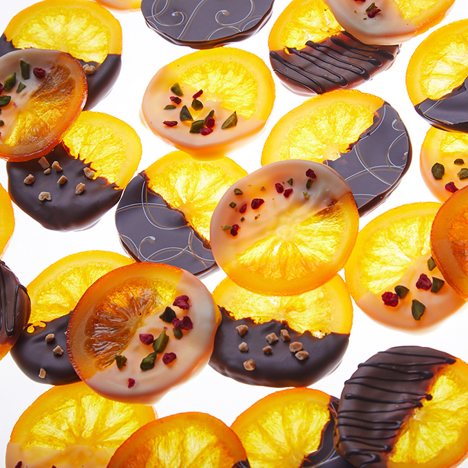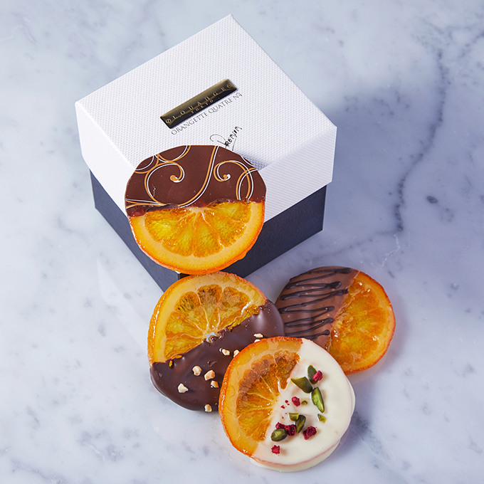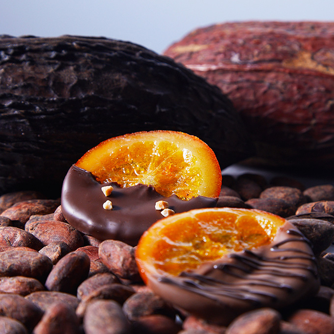 国産のオレンジをセミドライにすることで、フレッシュ感を残しつつ4種のチョコレートのマリアージュを楽しめるフルーティーチョコレートです。
